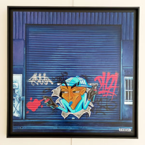 En 2012 j’emménage à Rouen, à cette époque j’expérimente toujours dans mes toiles tout en laissant ma signature un peu partout, le graffiti influence ma peinture et vice versa. Avec le temps j’ai développé plusieurs styles, en passant du graff classique, à la figuration libre ou encore à une peinture plus académique aux influences urbaines.